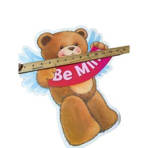 Vtg 90s Valentines Day Die Cut Poster Sign Bear Be Mine Heart Amscan Brand 15”