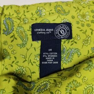 Vintage 90s Venezia Jeans chartreuse green paisley sundress. Women's plus size 18.