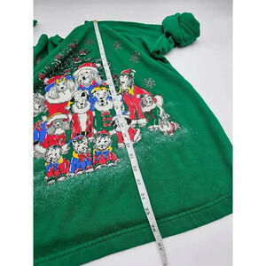 Vtg 90s Women's Green Christmas Santa Dogs Holiday Crewneck Sweater