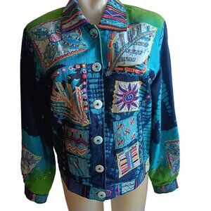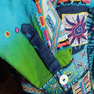 Vtg 90's Women's Jacket XS Colorful Patchwork Embroidered Coldwater Creek India