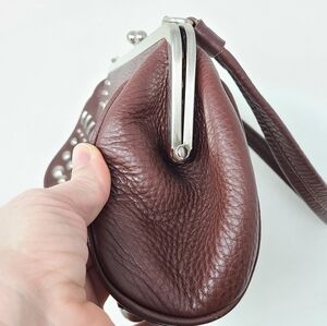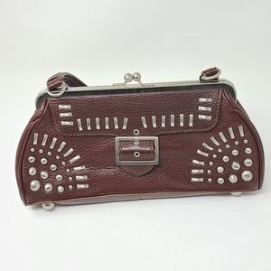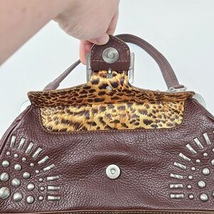 Vtg 90s Y2K Brown Leather Studded Short Strap Hand Shoulder Bag Animal Print