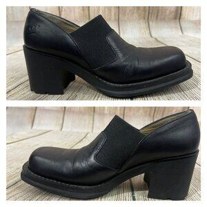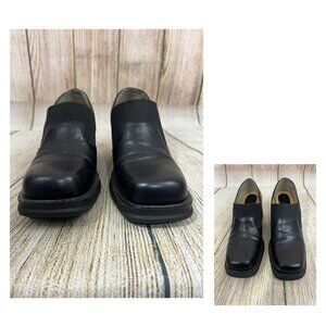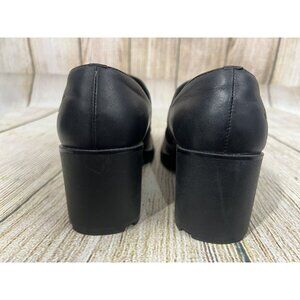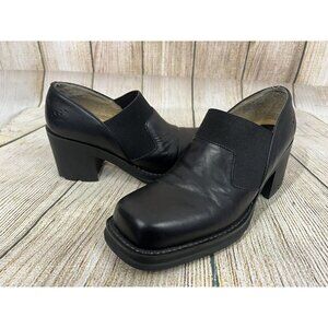 Vtg 90s Y2K Chunky Heel Leather Loafers Sz 8 Black Square Toe Moto Biker Goth