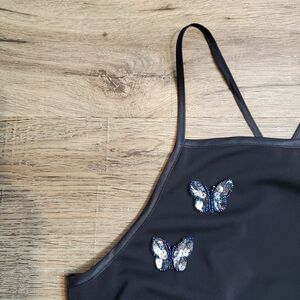 Vtg 90s Y2K City Triangles Maxi Slip Dress Sequin Beaded Butterfly Side Slit Juniors 9 / Size SMall. Made in USA. HOmecoming Fairy