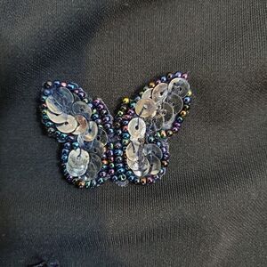 Vtg 90s Y2K City Triangles Maxi Slip Dress Sequin Beaded Butterfly Side Slit S