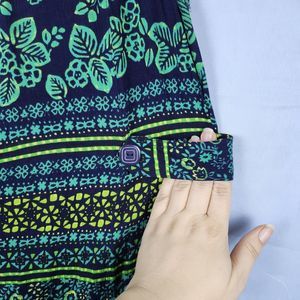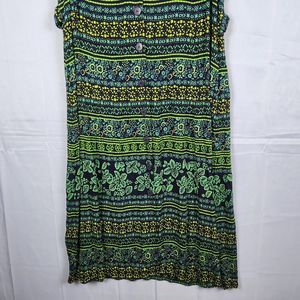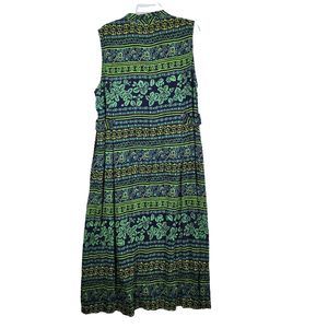 Vtg 90s Y2K Erika Dress Rayon Maxi Button Front Floral Tropical Green Blue Sz L