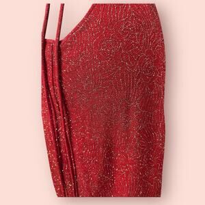 Vintage 90s Y2K Formal Dress Small Red Sparkly Midi Whimsigoth Low Open Back Bodycon