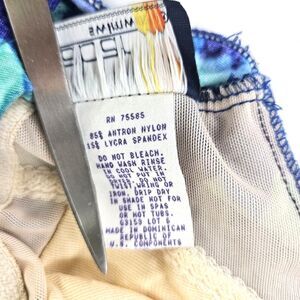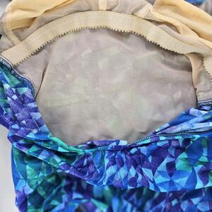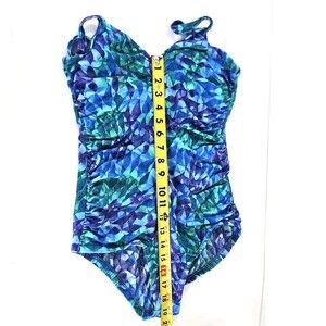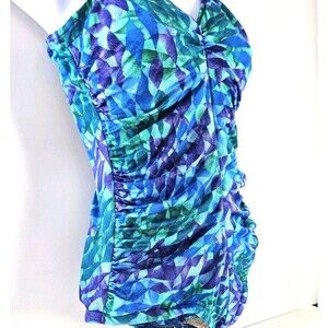 Vtg 90s/ Y2K Gabar Womens One Piece Swimsuit Ruched V Neck Abstract Unsized S/M
