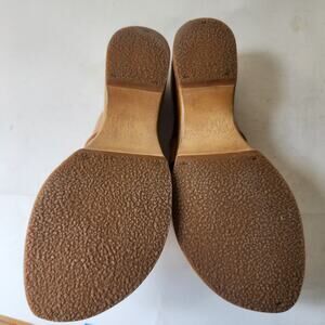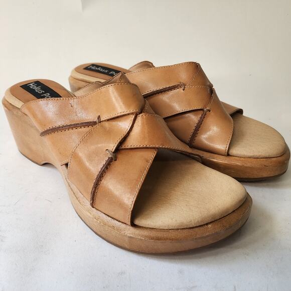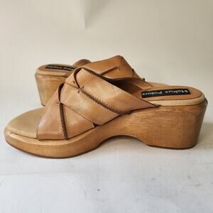 Vtg 90's Y2K Hokus Pokus Wooden Wedge Sandals Size 11M Brown Leather Woven