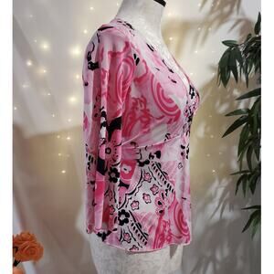 Vtg 90s Y2K La Khaki Floral Asymmetrical Babydoll Top Junior Womens Size L Pink White Black Fairy 1/2 Sleeve
