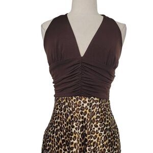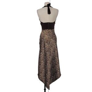 Vtg 90s Y2K La Belle Leopard Print Halter Midi Dress Sz 5/XS Brown Tan Satin