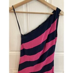 Vtg 90s Y2K Lauren Ralph Lauren 100% Silk Maxi Dress Size 4 One Shoulder Striped