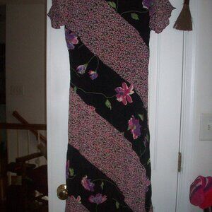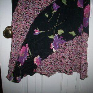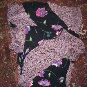 Vtg 90s Y2K Lola P Rayon Flowy Floral Midi Fairy Grunge Dress Gray Sz Medium