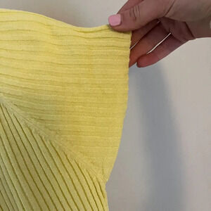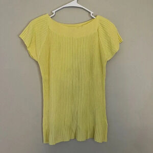 Mistic Womens Yellow Blouse Large Ribbed Knit Short Sleeve Dolman Pullover