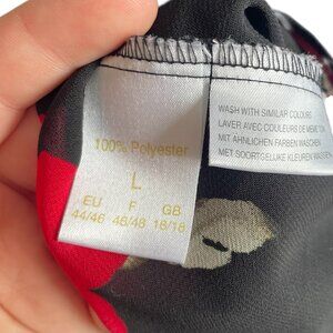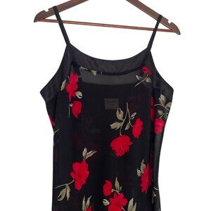 Vtg 90s Y2K Pasha Slip Maxi Dress L Black Red Floral Sheer Slits Romantic Goth