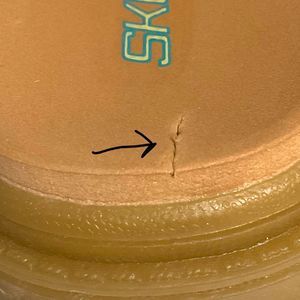 There is a 1/2" flaw on the footbed of the left shoe in the heel area. Appears to have happened during the manufacturing process, see photos. Box has slight shelf storage wear and writing. No other flaws to note. These are in beautiful vintage condition!