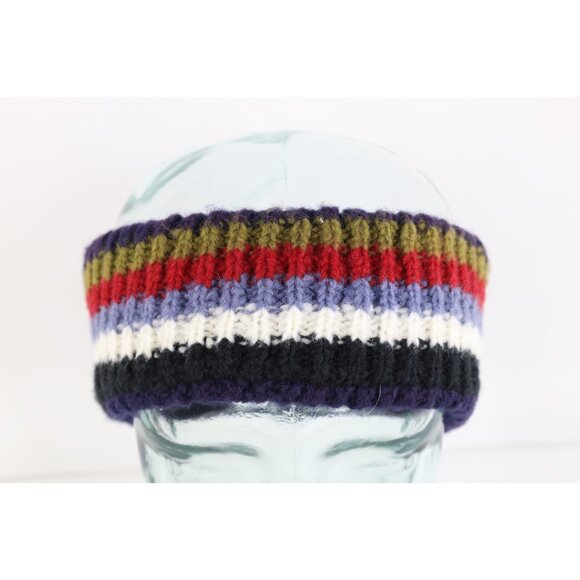 Vtg 90s Y2K Streetwear Babydoll Wool Blend Knit Rainbow Striped Headband Earband