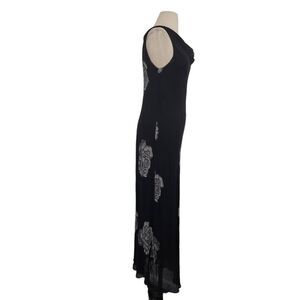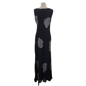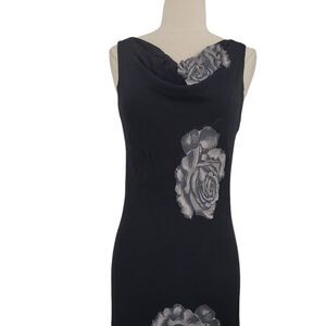 Vtg 90s Y2K Tessuto Black Floral Sleeveless Maxi Dress Sz M Cowl Neck Rayon