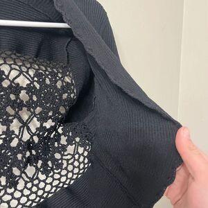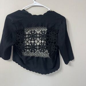 Vtg 90s Y2K Womens Black Cropped Cardigan L Short Sleeve Knit Whimsigoth Crochet