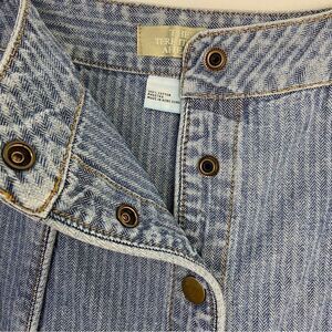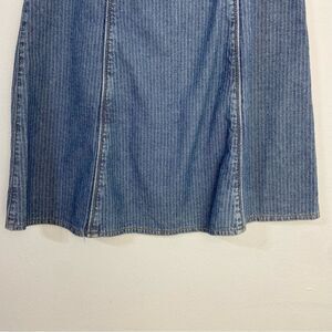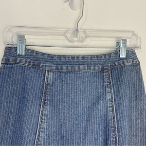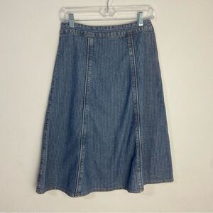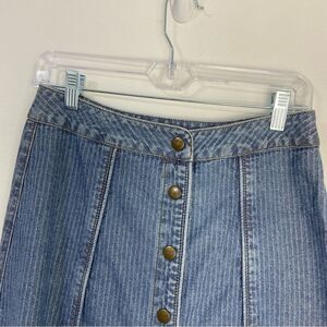 Vintage Womens Denim Midi A-Line Fit & Flare Skirt Buttoned Down Striped Hippie Streetwear