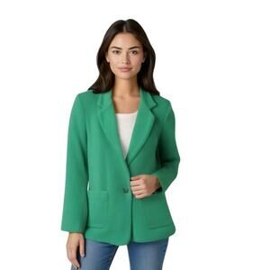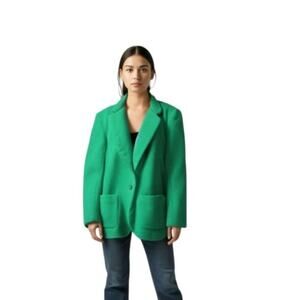 Vtg. 90s Y2K Wool Blazer Womens Size M Boxy Pea Green Career Corporate Power