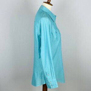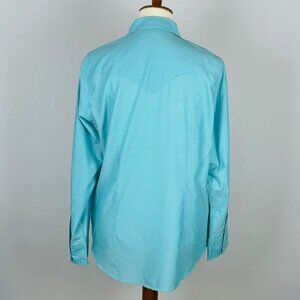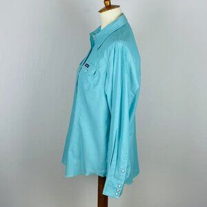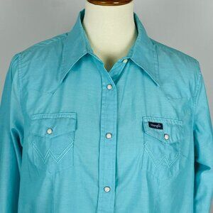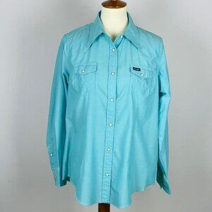 Vtg 90s Y2K Wrangler Western Yoke Collar Shirt Sz L Turquoise Pearl Snap Cowgirl