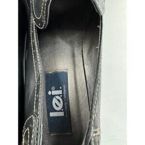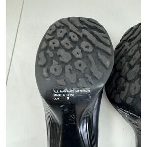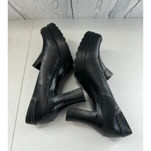 Vtg 90s Y2K lei Size 9 Loafer Heels Shoes Black Platform Leather Chunky