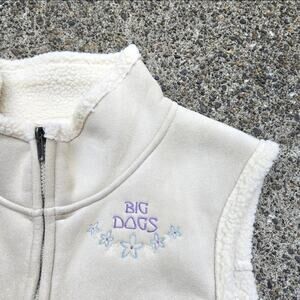 Vtg 90s Y2k BIG DOGS Floral Logo Suede Deep Pile Fleeced Lined Zip Up Vest XL