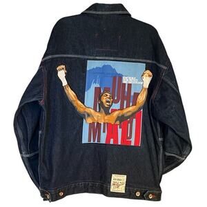 Vintage 90s Y2k Platinum Fubu Muhammad Ali Oversized Denim Jacket