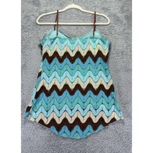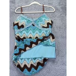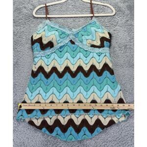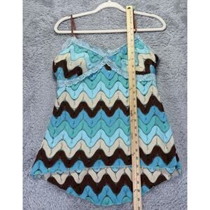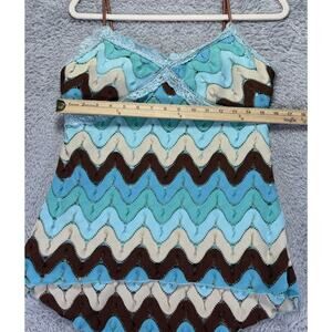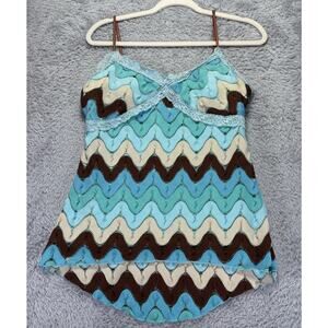 Vtg 90s Y2k Rampage Large Tank Top Babydoll Crocheted Blue Green 70's Lace Fariy