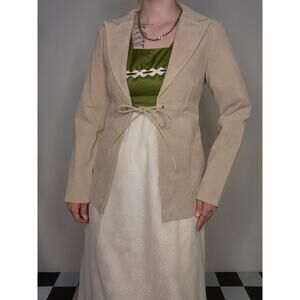 Vtg 90s Y2k Tan Suede Leather Tie Front Hippie Boho Bratz Collared Jacket Sz Sm