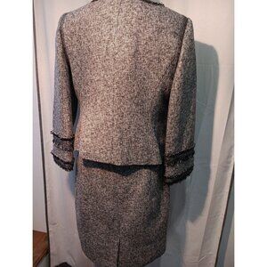 This vintage dress and jacket set from The Limited is a must-have for any business-oriented wardrobe. The black tweed material gives it a classic, sophisticated look that is perfect for any occasion. The sheath style is flattering and comfortable, while the jacket adds a touch of elegance to the outfit.