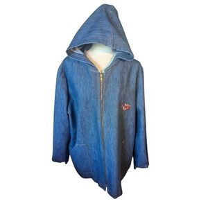 Vtg 90s denim chambray hooded zip front jacket with embroidery sz 3x