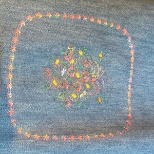 cute ditsy floral embroidery on back. coastal grandma