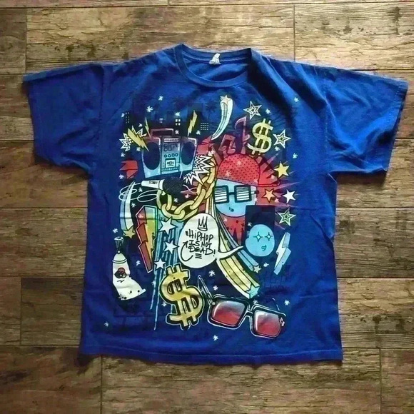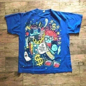 Vtg 90s hip-hop blue spray pain graphic t-shirt men large