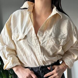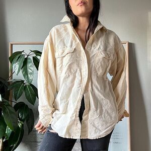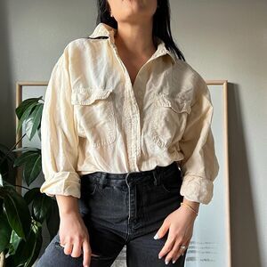 Vtg 90s minimlist button down blouse cotton ramie Oversized Long Sleeve Medium
