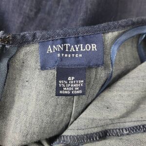 Vtg 90s Ann Taylor Denim Halter Dress Sz 4P Dark Wash Open Tie Back Stretchy