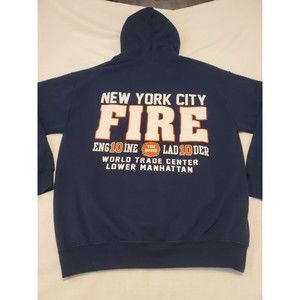 Vtg 9/11 Tribute Hooded Sweatshirt New York City Engine 10 Ladder 10 Mens Sz Med