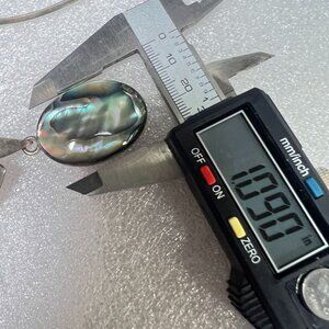 Vtg 925 Silver Abalone Pendant & Earrings By JRI and ATI Mexico With Heart Design This exquisite sterling silver necklace and earring set showcases the natural beauty of abalone shells, with their iridescent hues and organic charm. The necklace features a delicate oval pendant, complemented by heart-shaped earrings, both encased in silver. Carefully crafted by JRI Mexico, this set exudes artisanal craftsmanship and timeless elegance.