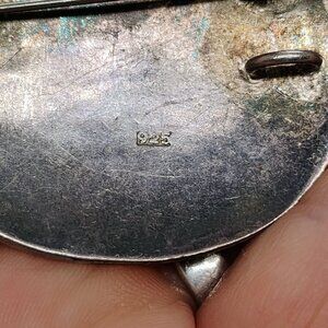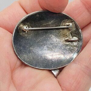 Vtg 925 Sterling Silver Leopard Jasper Brooch Pendant Picture Stone Red Brown