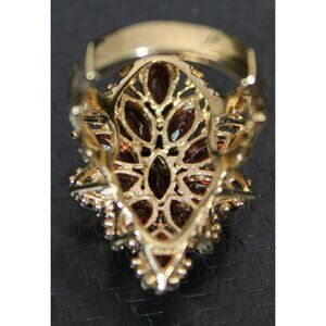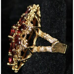 What you are purchasing today is this stunning Vtg .925 Sterling Silver Red Garnet Crystal Vermeil Cocktail Ring that features a beautiful branching detail. The gold and red hues perfectly complement each other, making it an eye-catching piece. Fits approximately size 7.