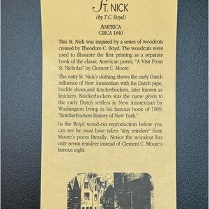 Inspired By a series of woodcuts created by Theodore C. Boyd. The woodcuts were used to illustrate the first print as a separate book of the classic American poem, "A Visit From St. Nicholas" by Clement C. Moore.