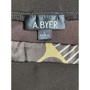 Vtg A. Byer Women's L Tiered Asymmetrical Mini Dress Brown Blue Abstract Y2K USA