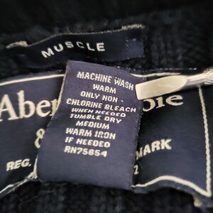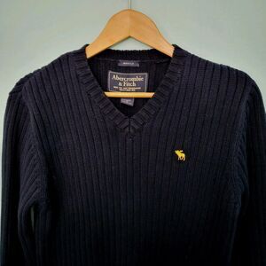 Vtg ABERCROMBIE & FITCH Sweater Mens XL Navy Blue 100% Cotton Muscle Fit Moose