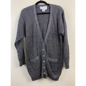 Vtg ADRIENNE VITTADINI LAMBSWOOL Sweater CARDIGAN WOMENS sz MEDIUM GRAY metallic