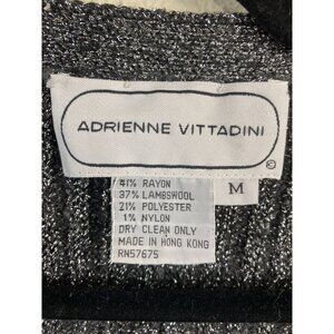 Vintage ADRIENNE VITTADINI LAMBSWOOL Blend Sweater CARDIGAN WOMENS sz MEDIUM GRAY metallic party Holiday New Year Evening Disco Retro 70s 60s Silver Gray Knit Ribbed Long Sleeve
