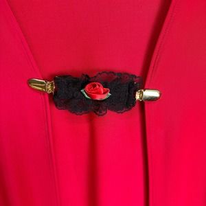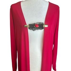 Vtg. AGB Dress Tunic Long Sleeve Cardigan Women’s 8 Open Front Rose Lace Grannycore Made in USA. In good pre-owned condition.