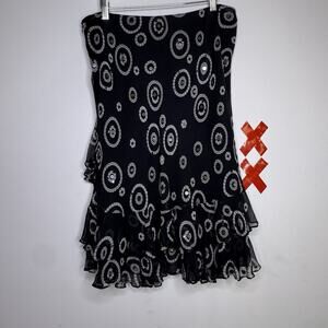 Vtg ALFANI Black Silk Ruffle Sequin Skirt Y2K Fairy Whimsygoth Coquette 90s 14
