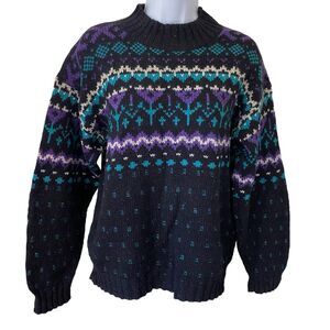Vtg ALPS Fine Womens Apparel Fair Isle Nordic Chunky Sweater Med Wool Blend EUC