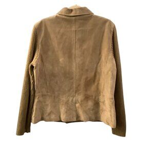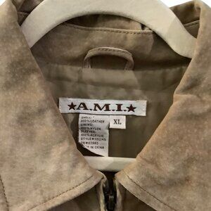 Vtg AMI Tan Leather Jacket With Ribbed Knit Sleeves Women Size XL Lined