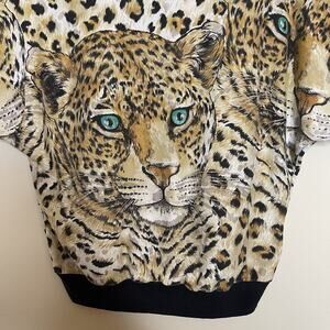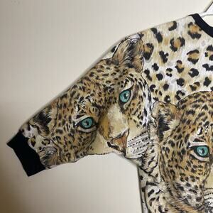 Vtg AOP Cheetah Leopard Print Cropped Sweatshirt Batwing Glitter 80s 90s Sz M?